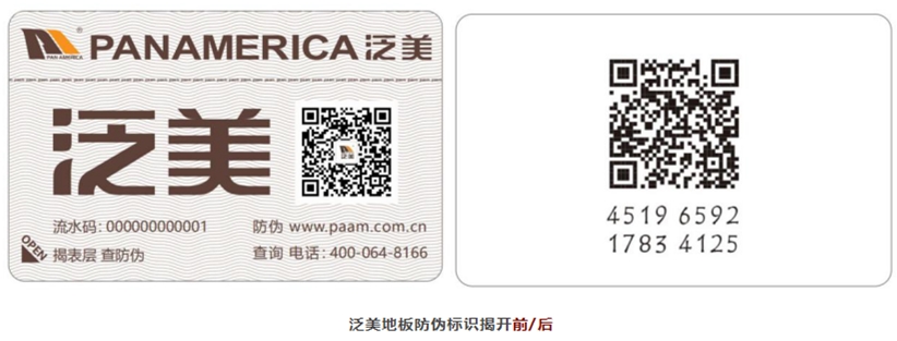泛美地板防偽標(biāo)識(shí)分表層與里層,共兩層識(shí)別內(nèi)容。以備收貨查驗(yàn)之需,正品防偽辨別與查詢攻略,為您詳細(xì)介紹如下: